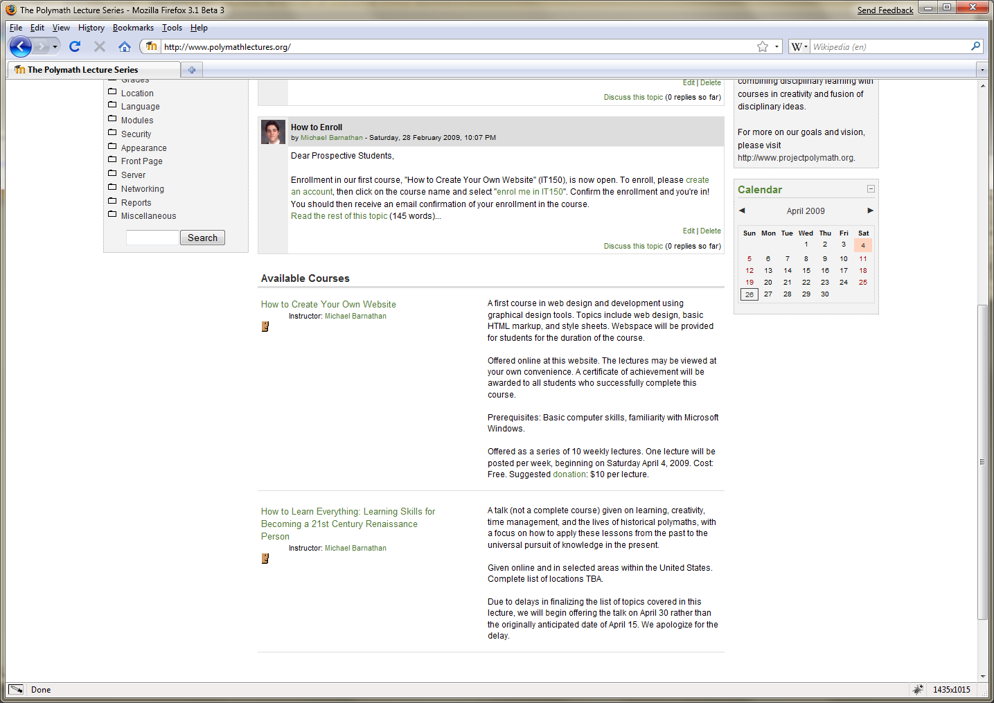 I'm not merely organizing this and sitting idly by, however; I'm also acting as the instructor of the first course, "How To Create Your Own Website". This was one reason I sought a teaching position last year; to have the experience to act as an instructor here, with an innovative educational paradigm at stake.