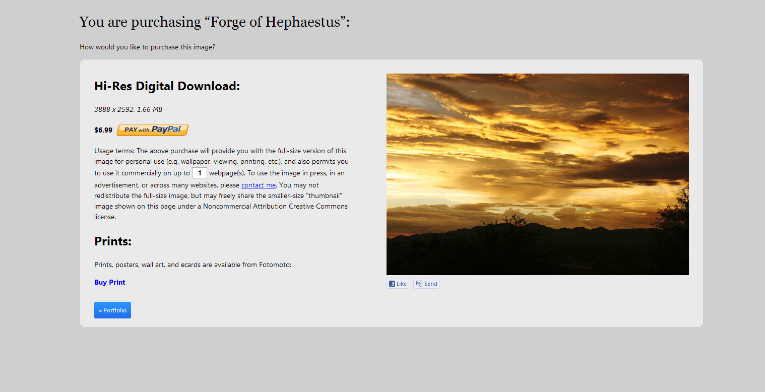 I set up a photography portfolio on Behance, then (because Fotomoto's download fees were unacceptable) implemented a custom stock photography cart and checkout system using Paypal.