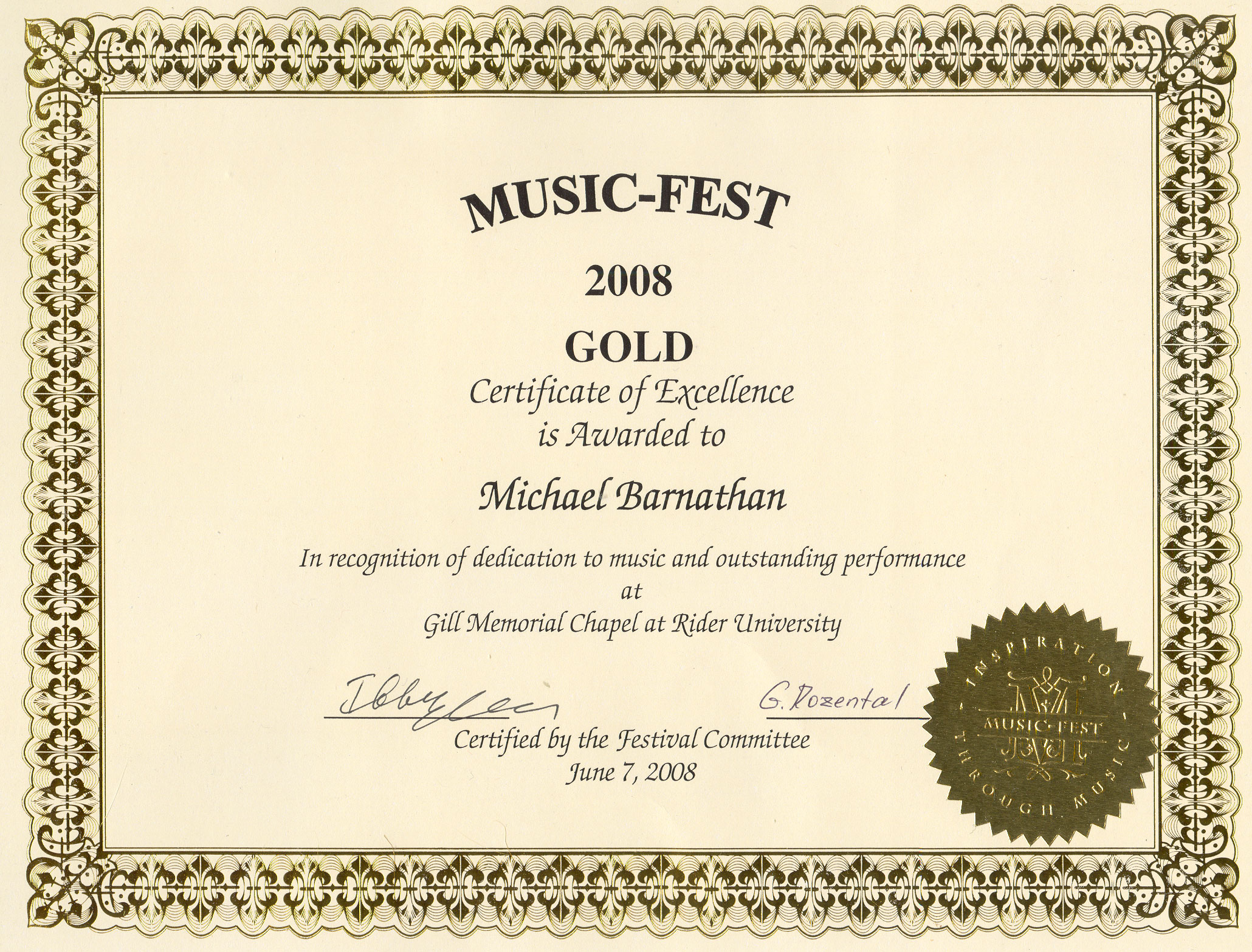 MusicFest 2008I placed Gold in MusicFest 2008 and performed the Pathetique at Gill Memorial Chapel on June 7, 2008. Date: June 7, 2008. |