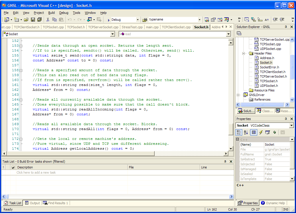 The Generalized Networking and Sockets Library, or GNSL, is a completely object-oriented socket interface coded in C++ that will work on any platform with a BSD-compliant socket API (and Windows). It has been tested on Linux, BSD, Mac OS X, and Windows XP.
