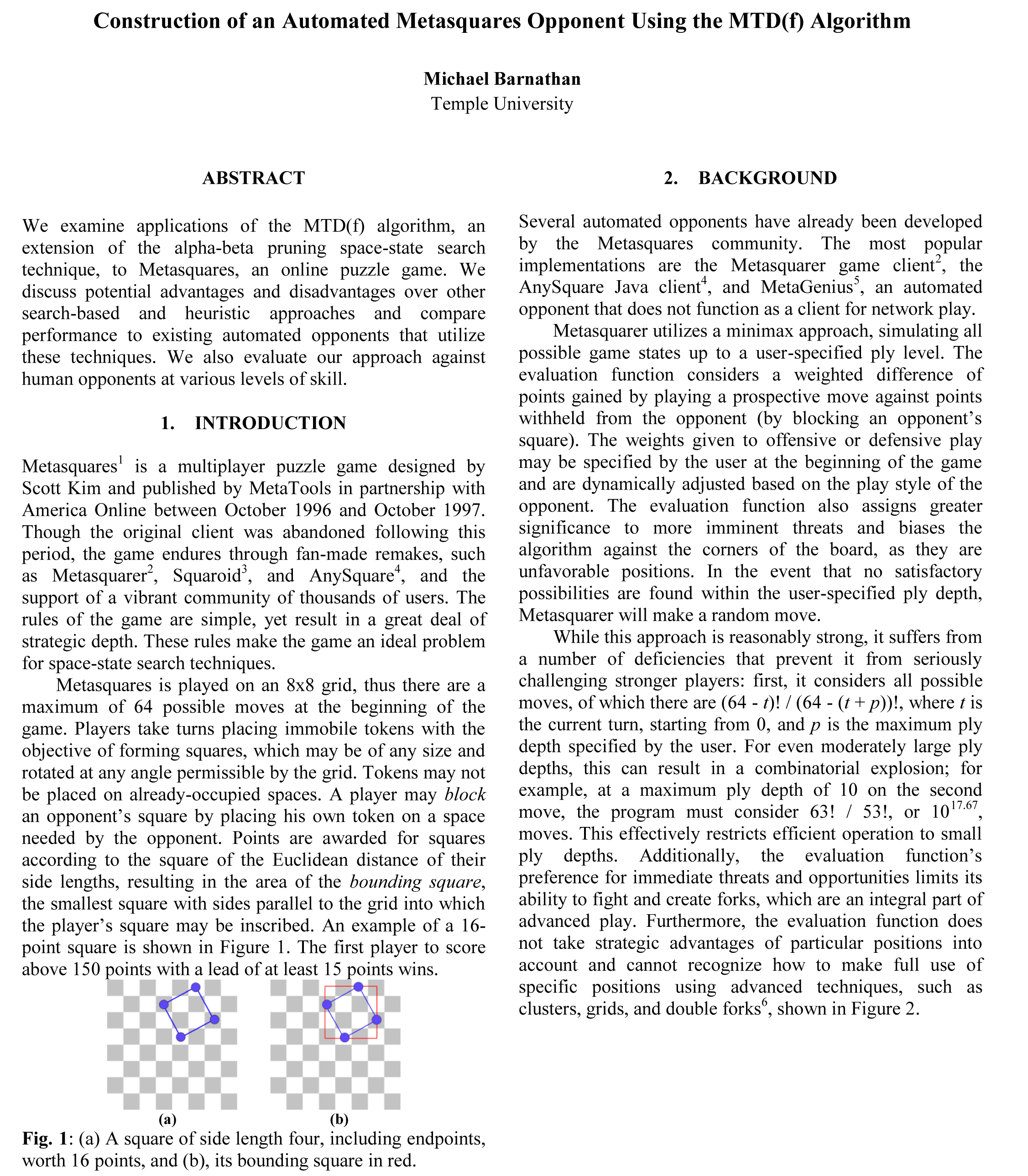 This is a paper I began as an assignment for an artificial intelligence class. I am continuing work on it since I am interested in the problem of improving the AI in my program. I may publish it at some point, but whether I do or not is largely irrelevant.