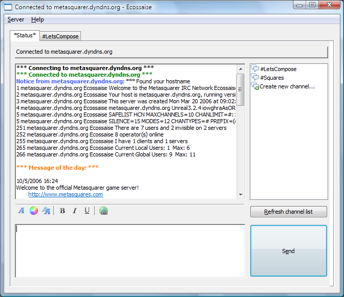 After completing the "Let's Compose! Collaborator" plugin, I decided to release the IRC client component of the plugin as a standalone application, which I termed "Ecossaise".